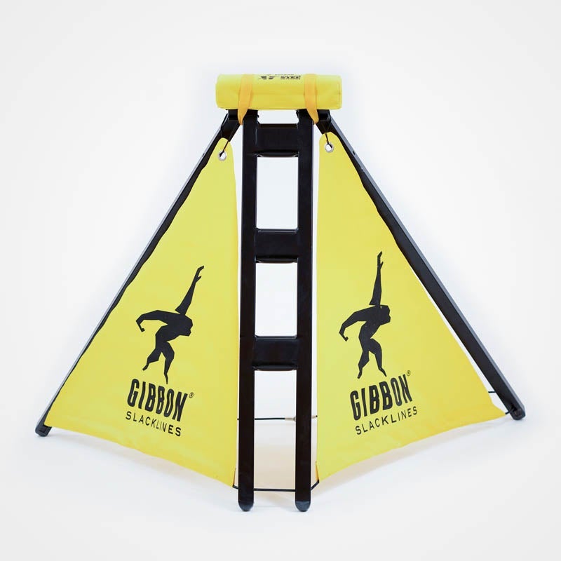 3 Beiniges Rahmengestell zur Positionierung der Slackline in der gewünschten Höhe. Ideal für den Einsatz im Garten, wo Ankerpunkte fehlen oder der Ankerpunkt niedriger ist als die gewünschte Aufbauhöhe oder um progressiv in der persönlichen Entwicklung die reelle Distanz der Slackline zu verkürzen oder zu verlängern.