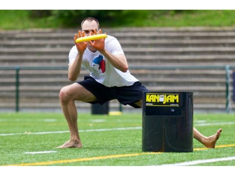 Kan Jam ist ein Actionreiches Spiel, bei dem es darum geht, im Team eine Frisbee in eine Tonne zu versenken. Ein Teampartner ist dabei der Werfer der Frisbee, der andere Teampartner steht hinter der Tonne und veruscht durch einen gezielten Schlag auf die Frisbee, diese in der Tonne zu versenken. Was sich so einfach anhört, muss erst einmal geschafft werden.