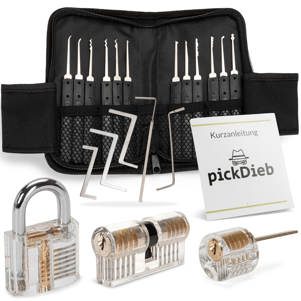Dieses hochwertige Dietrich Übungsset ist ideal für alle, die das gewaltfreie Öffnen von Schlössern erlernen oder ihre Fähigkeiten gezielt verbessern möchten. Dank der transparenten Übungsschlösser kannst du die Mechanik im Inneren direkt beobachten und jeden Schritt nachvollziehen – perfekt für Anfänger und Fortgeschrittene.