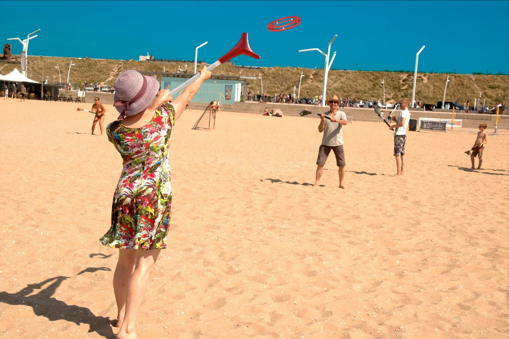 Das neue Sportspiel YOU.FO bietet ein völlig neues Spielkonzept: Es basiert auf dem Werfen und Fangen eines aerodynamisch geformten Wurfringes, der mithilfe von Wurfstöcken zwischen 10-30 Meter weit geworfen werden kann. Dafür braucht es Konzentration, etwas Kraft, Flexibilität und Kooperation. YOU.FO kann im Eins gegen Eins gespielt werden, mit Toren oder Freestyle mit mehreren Leuten in Parks, auf der Wiese oder am Strand.